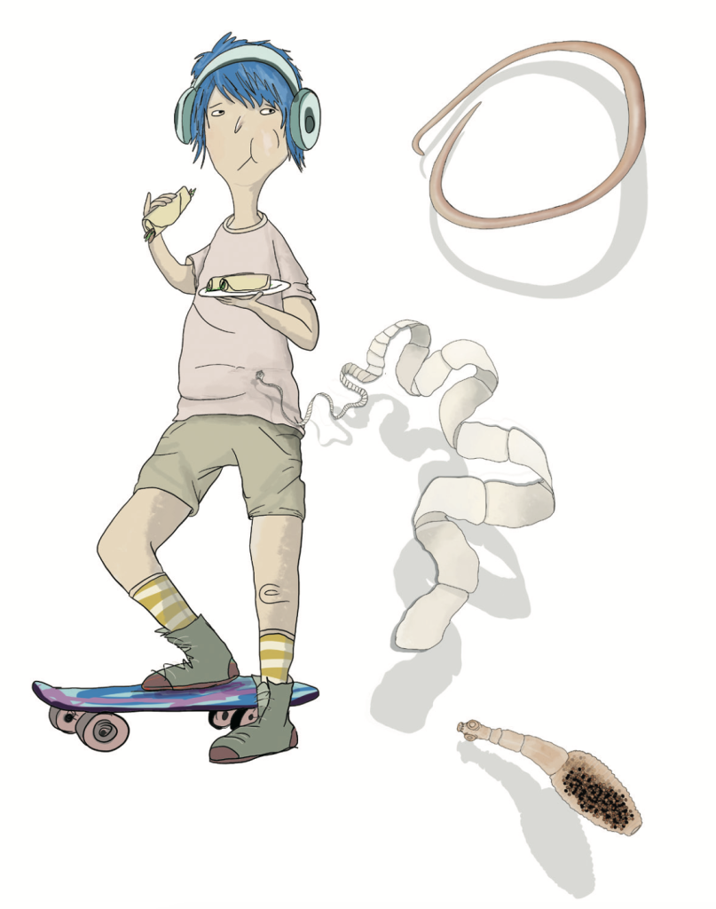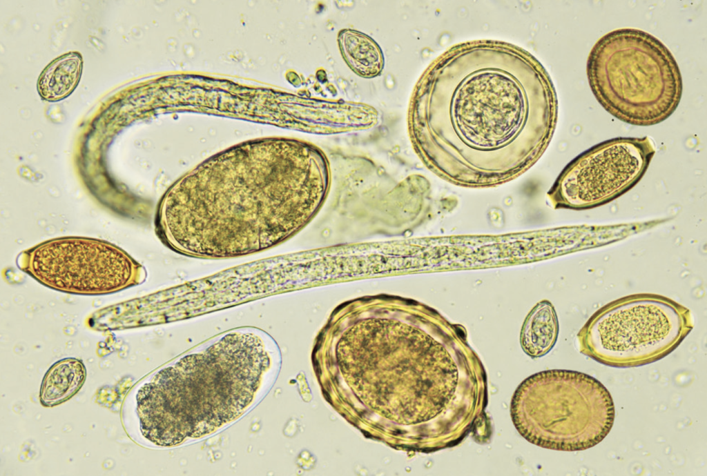 Desde sus orígenes, hace más de 200 000 años, la especie humana ha estado expuesta a una gran cantidad de micro y macroorganismos muy diversos. Una evidencia fósil de ello es que en coprolitos o albergados en ancestros que datan del Neolítico se han encontrado diferentes helmintos, los cuales son gusanos parásitos de cuerpo alargado con un tamaño variable que oscila entre milímetros hasta metros. En la actualidad, se estima que aproximadamente 2 000 millones de personas (alrededor de 30% de la población mundial) están infectadas por al menos una especie de helmintos. Dentro de esta clase de parásitos se encuentran dos phyla: los platelmintos o gusanos planos y los nematodos o gusanos redondos, ambos de relevancia médica. Ejemplos de platelmintos son Taenia solium y T. saginata (solitaria), Echinococcus granulosus y E. multilocularis; de los nematodos, Enterobius vermicularis (oxiuro), Trichuris trichiura (tricocéfalo), Ascaris lumbricoides (gusano redondo grande), Necator americanus y Ancylostoma duodenale (uncinarias), y Strongyloides stercoralis.