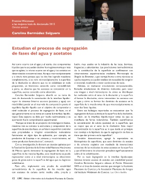 Carolina Bermúdez Salguero abordó en su tema de las moléculas entre el seno de la disolución y la superficie