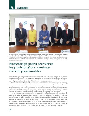plina en la sociedad, es que la ACMor junto con el Instituto de Biotecnología (IBt) de la