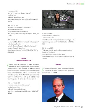 Continúa el ciclo de conferencias ”Tu mundo con ciencia’’, Obituario