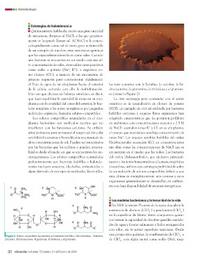 ■ Figura 2. Solutos compatibles acumulados por bacterias halófilas o halotolerantes: 1) betaína, Los modelos bacterianos y la tenacidad de la vida