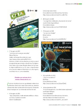 de sus investigaciones. Las charlas más recientes han sido: • 10 de septiembre de 2024